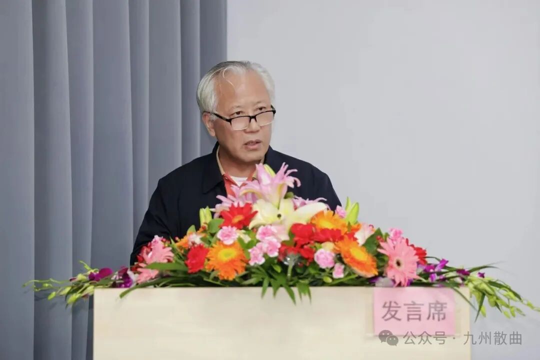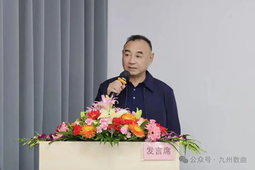 (广东中华诗词学会会长郭杰讲话) 广东中华诗词学会副会长钟浩天、会长郭杰先后讲话,对委员会的成立表示祝贺,并对其未来发展提出了期望与要求。中华散曲工委主任徐耿华在讲话中简要回顾了散曲工委十年历程,介绍了“ 丝路情 ”征稿进展,倡议推动散曲创作与吟唱规范化,希望广东曲工委努力打造本地散曲创作的显明特色。